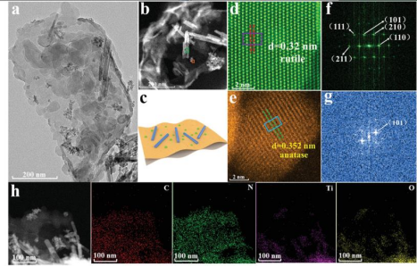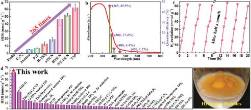 The dual S-type transfer mechanism generated by this new structure overcomes the limitations of large contact barriers, lattice mismatch, and slow charge transfer in traditional heterojunctions. This photocatalyst exhibits an excellent photocatalytic hydrogen evolution rate of 62.37 mmol g-1 h-1, and exhibits an apparent quantum efficiency of 45.9% at 365 nm, which far exceeds most TiO2 based semiconductor photocatalysts. At the same time, the prepared photocatalyst exhibits excellent cyclic stability.