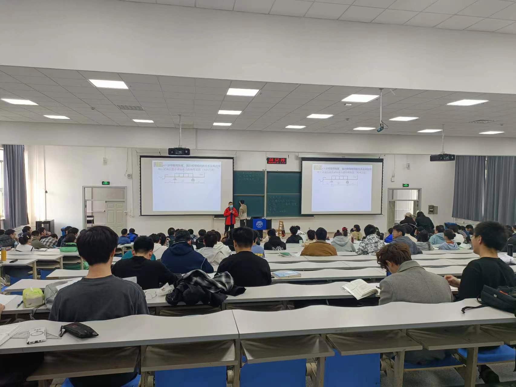 “课前十分钟”微思政:严老师来到《材料力学》课程课堂首先了解学生出勤情况,随后针对近期部分同学出现的感冒等身体不适情况,进行了关心关注,并提醒大家要注意寝室卫生的勤打扫、勤通风、消除寝室安全隐患,阻隔传播途径。此外,严老师还提醒大家,要保持上课出勤率,珍惜现在的学习时光,把握机会,同时要带动身边同学一起学习、共同进步。