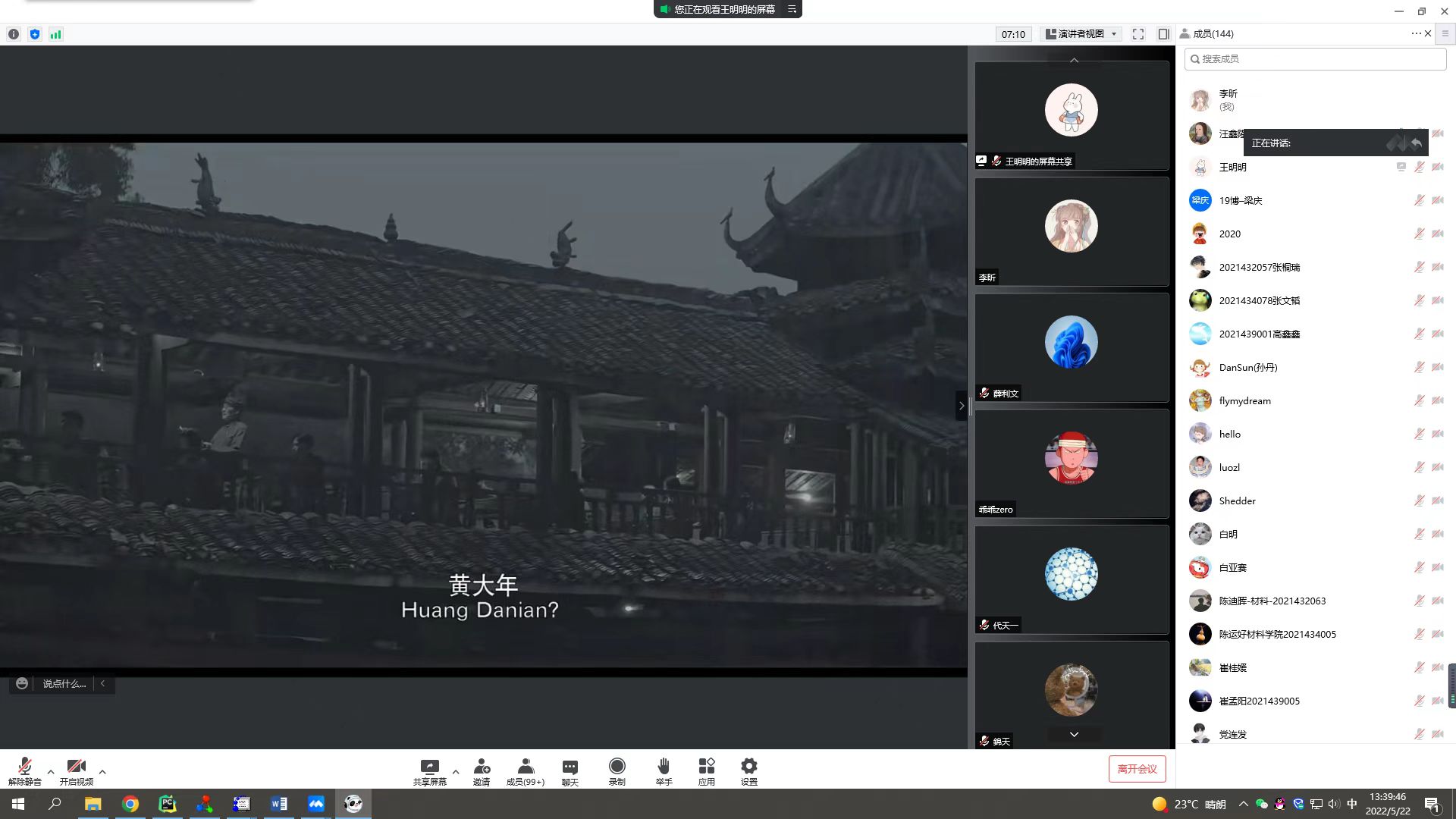 纪念习近平总书记对黄大年同志先进事迹作出重要指示五周年工作方案》,2022年5月22日下午,材料学院18个党支部三百余人通过腾讯会议直播的形式观看了电影《黄大年》,以缅怀黄大年老师。