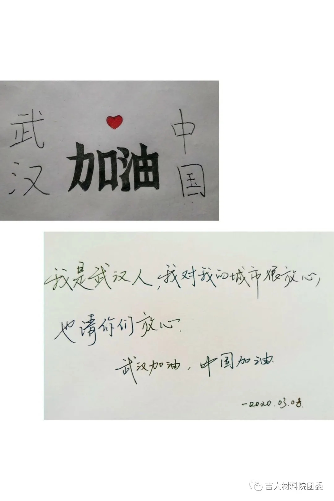 此次活动以班级为单位,各班学生在活动期间积极踊跃参加,并且以“武汉加油,中国加油”为主题,在QQ空间上发布自己手写文字图片,为抗击疫情加油助力。各班作品由组织委员收齐,并经过团委组织部筛选,选择出优秀作品进行官方推送。