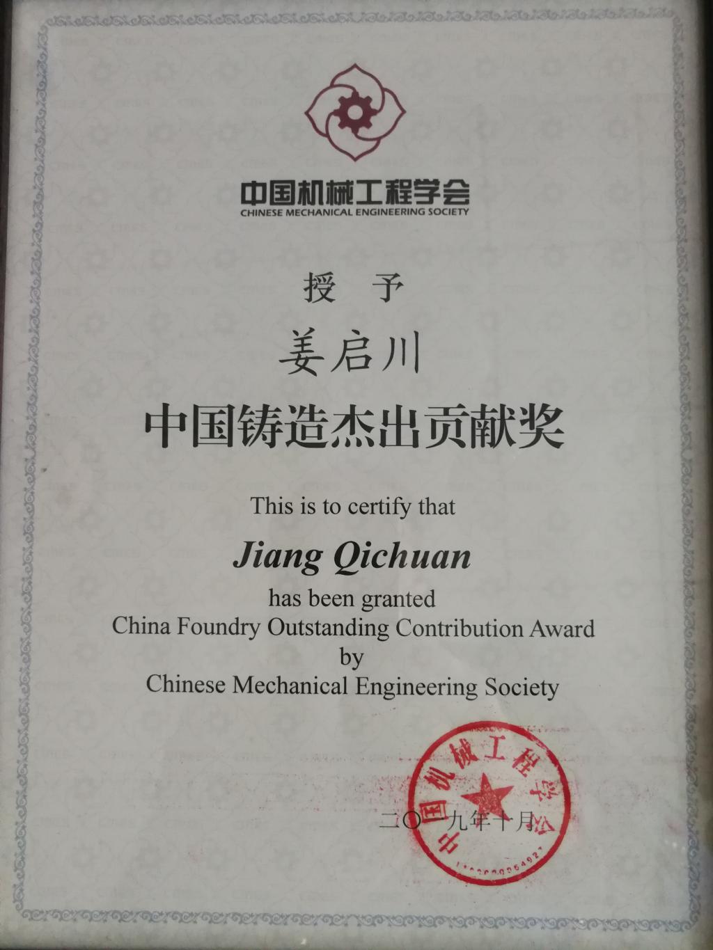 2019年10月28-31日在武汉表彰了第九届中国机械工程学会中国铸造杰出贡献奖2人,姜启川教授经过多年的刻苦专研和丰硕的科研成果获此殊荣。