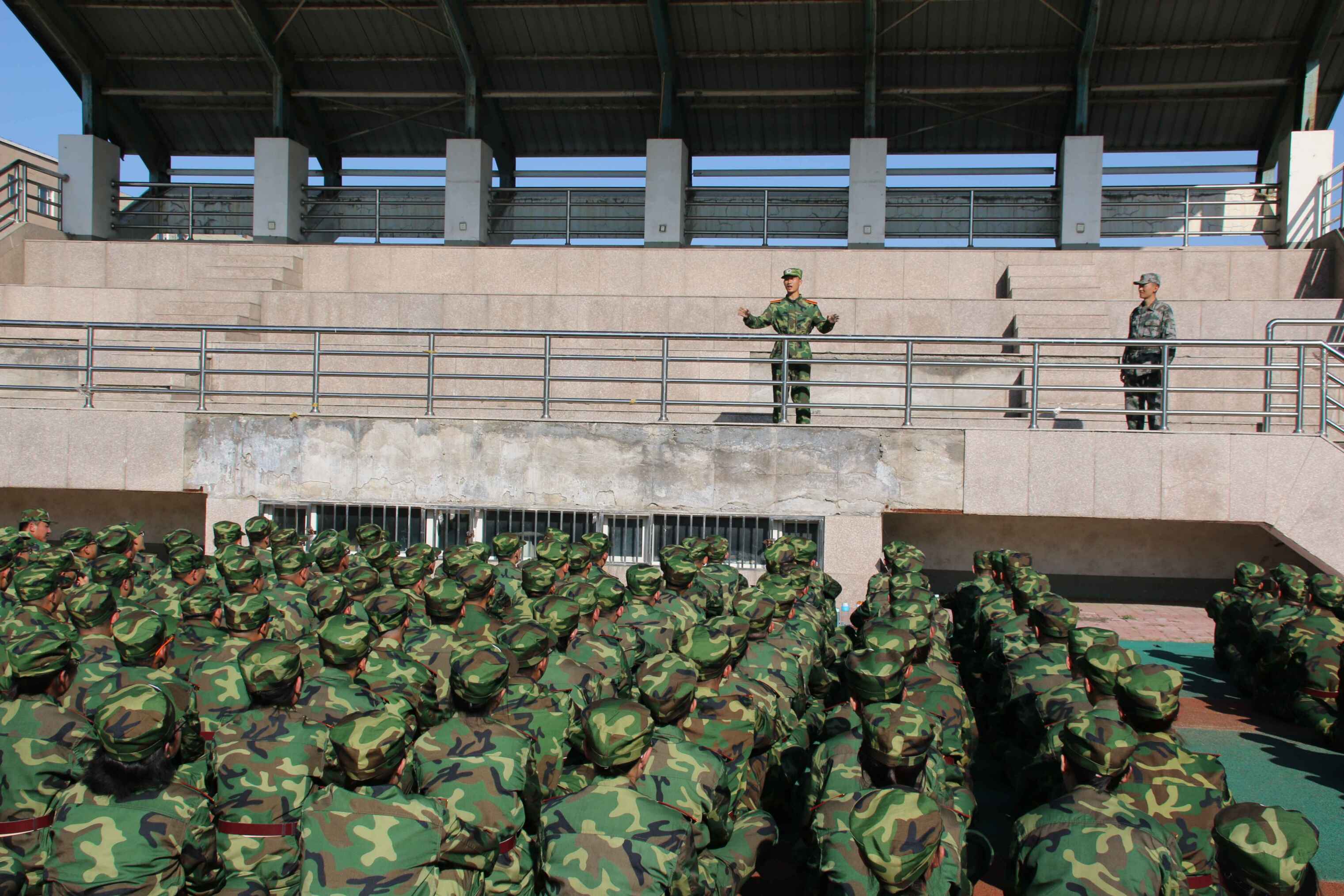 为了更好地保持新生的身心健康,使军训训练松弛有度,加强新生爱国意识,材料学子于训练的空闲时间在田径场学习唱军歌。