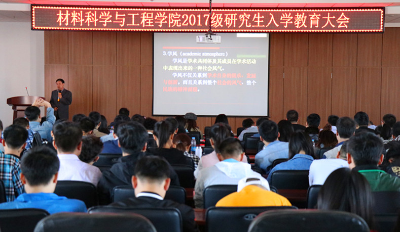 研究生科学道德和学风教育工作实施办法》(校研院字〔2014〕47号)精神及相关要求,加强研究生科学道德和学风教育工作,我院于2017年8月29日上午9:00在逸夫机械材料馆八楼报告厅对全体2017级博士、硕士研究生进行了科学道德与学风教育会议。材料学院党委副书记曲贵文、副院长朱永福、研究生办公室秘书刘徽出席会议。会议由黄色影片