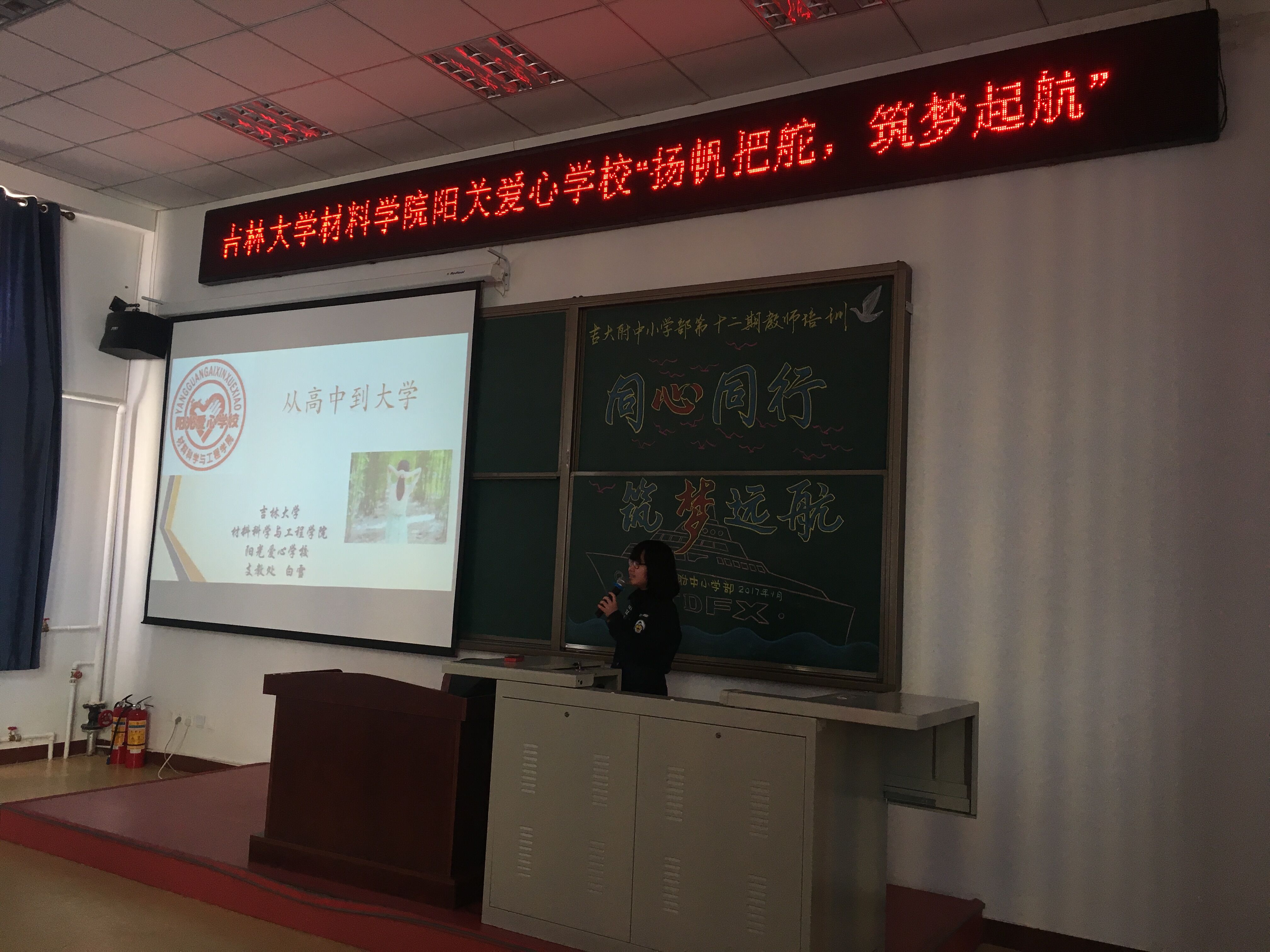 阳光爱心学校支教处于3月31日在吉大附小多功能报告厅进行了“扬帆把舵,筑梦启航”的励志支教活动。