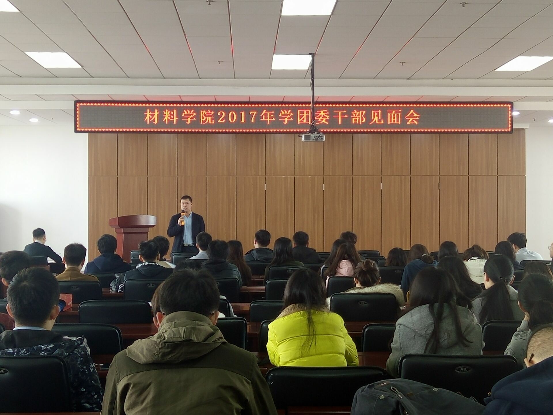 为了培养和激励学生干部,更好地进行学团建设,更加优秀地完成学生工作。材料学院于3月24日在逸夫机械材料馆八楼报告厅举办了材料学院2017年学团委干部见面会。材料学院团委书记兼2016级辅导员严冬、2015级辅导员佟昊天出席此次活动,材料学院学团委四大组织副部长级以上(含副部长)学生干部参加本次活动。