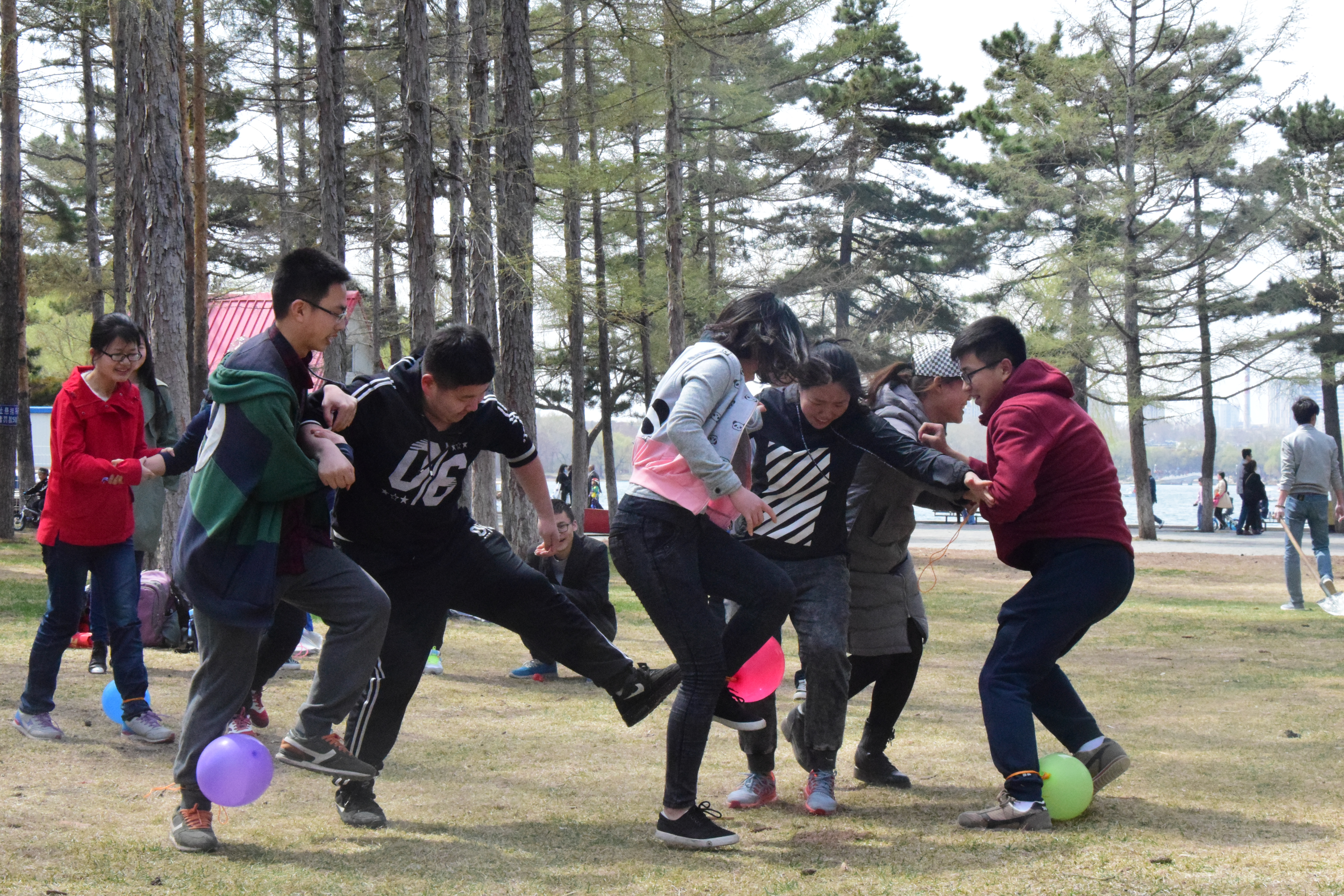 活动在“默契游戏”中拉开帷幕,每组两人分别站在遮挡布前后,并改变自己位置,布被撤掉后由前面的人背起身后的人,若为同组,迅速跑到指定地点解开绳子,若不同组要尽力阻止其完成任务,在考验默契的游戏中拉近学生之间的距离,使大家逐渐融入到活动中。接下来的游戏名为“穿越雷阵”,被蒙上眼睛的队员在同伴的牵引下穿越由其他同学组成的“雷阵”,这需要队员对同伴的充分信任。“指压板接力赛”要求两人一组,翻越障碍,到指定位置挤破气球,并在指压板上共同完成十次跳绳,用时最短者胜利,让大家在欢笑的基础上,懂得了团队合作的可贵。最后进行的游戏叫做“踩气球”,每组需要踩对方的气球,同时保护好自己的气球,气球未爆的一组胜利,这项游戏考验了同学们团队合作的能力。游戏之后,由负责人总结讲话,大家打扫活动场地,清点人数,之后共同返回学校。