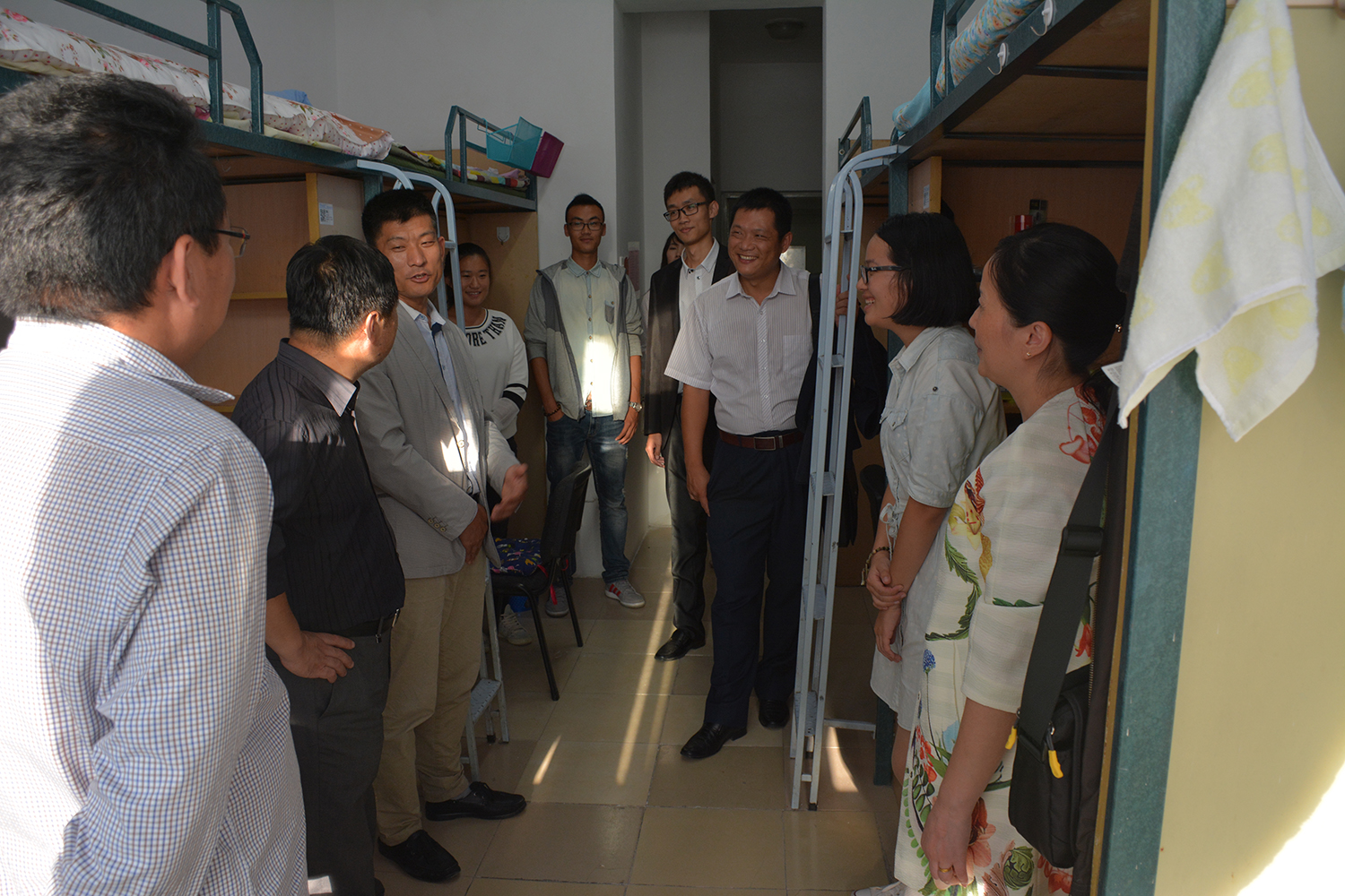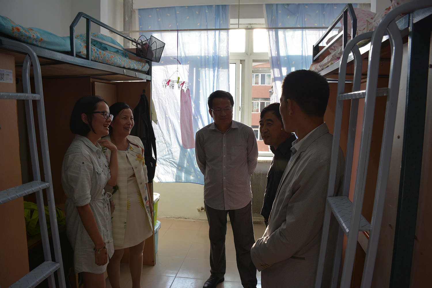 走进新生寝室,可以看到同学们行李已安置妥帖,把寝室整理得井井有条。老师们亲切地问候了15级新生家乡近况,是否适应长春的水土,对大学生活的期待和规划等。院领导关切地嘱托同学们要在大学中珍惜时间、完善自我、提升修养,并就校园安全问题嘱托同学们关好门窗,注意安全。