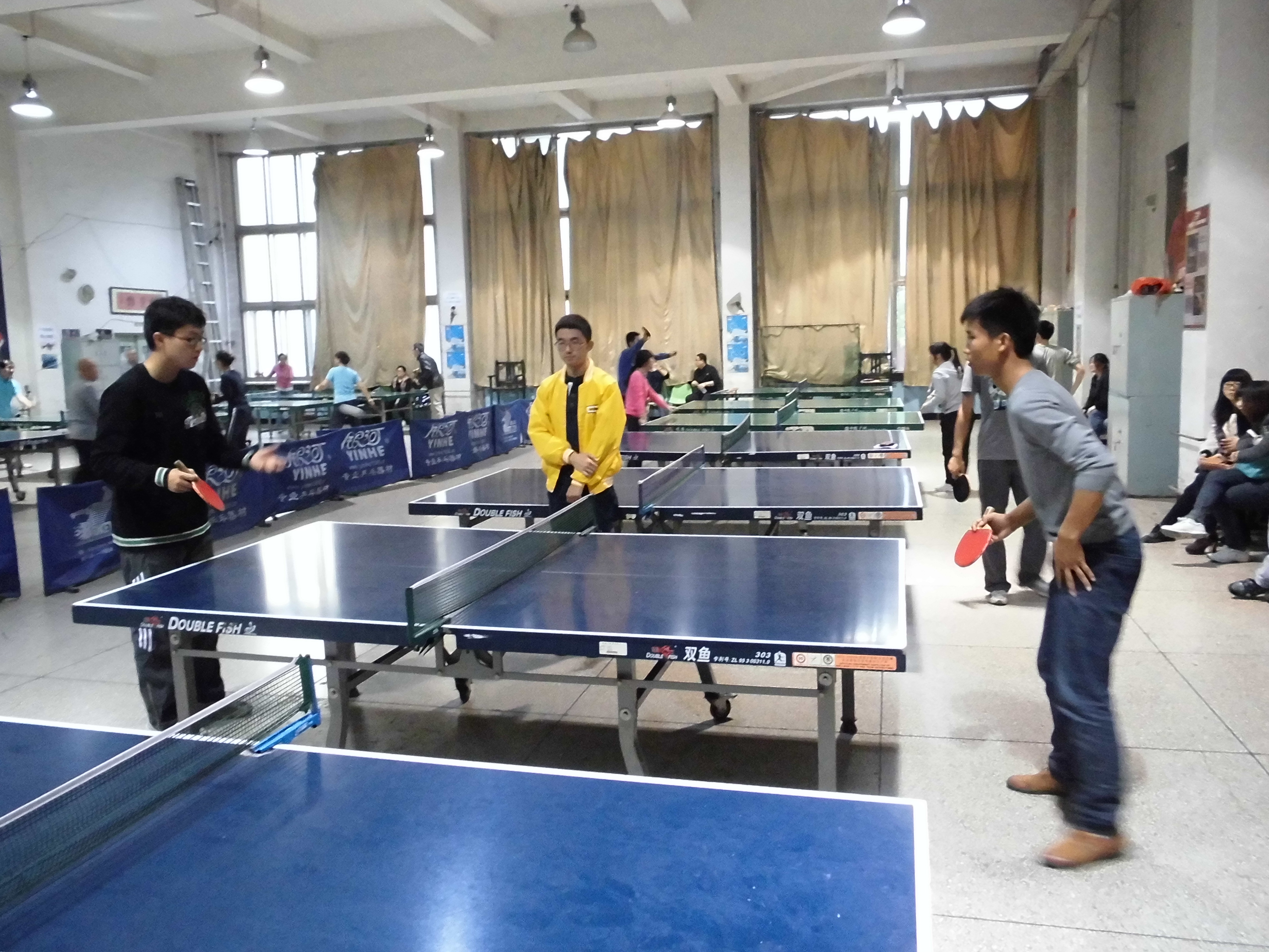 经过半个月紧锣密鼓的精心筹备,比赛于10月13日下午拉开了帷幕。本次比赛共有近三十名选手报名参加,比赛包括男子单打、女子单打、男子双打这三个项目,采用循环积分赛与淘汰赛进行,为各位乒乓球爱好者提供了展示自己的舞台。比赛开始后,各位选手都以自己最饱满的热情和最高涨的积极性全身心的投入到本次比赛当中,在赛场上展开了激烈的争夺,挥汗如雨,奋力拼搏,赛出了自己的水平和实力。随着比赛的进行,赛事亦愈加激烈和精彩,赛场上不时传出热烈的加油喝彩声,兴奋的“好球”声不断。经过多轮的淘汰和激烈的角逐,屈忠宝等同学获得了最终的胜利,也标志着本次比赛的圆满结束。