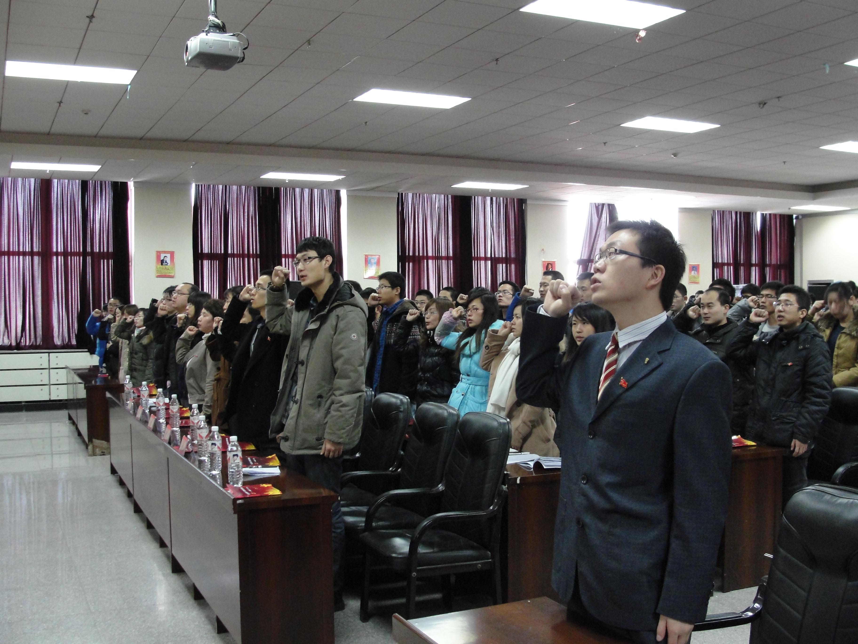 为大力弘扬十八大精神、深入贯彻落实科学发展观,加强对党的认识、提升研究生党建工作的整体水平,材料学院2012级研究生党支部在十八大召开期间开展了以“直播吉大,喜迎十八大”为主题的党支部活动。11月26日,“直播吉大,喜迎十八大”党支部活动总结大会在南岭校区机械材料馆报告厅隆重举行。出席本次大会的有材料学院党委书记周岩松、党委办公室主任刘虹、党委副书记于雅琳、研究生秘书处刘徽、学院辅导员辛颖以及材料学院全体研究生党员、预备党员和积极分子。本次大会由党委副书记于雅琳主持。