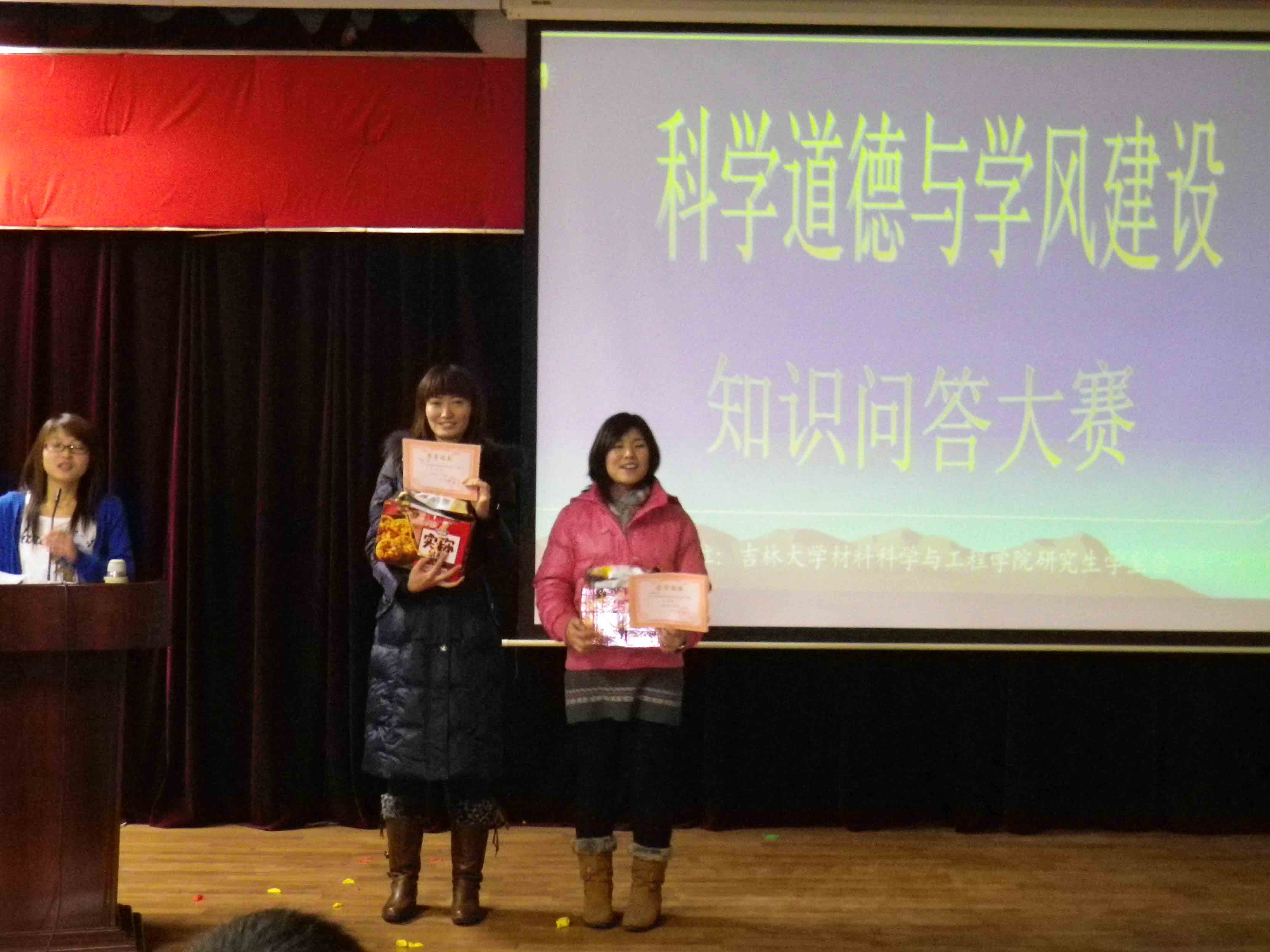 2011年11月27日晚,材料学院研究生会在南岭校区逸夫机械材料馆举办了关于学术道德和学风建设的知识问答大赛。参加活动的有材料学院研究生团委及研究生会主席团成员及各部部长和2011级硕士研究生。