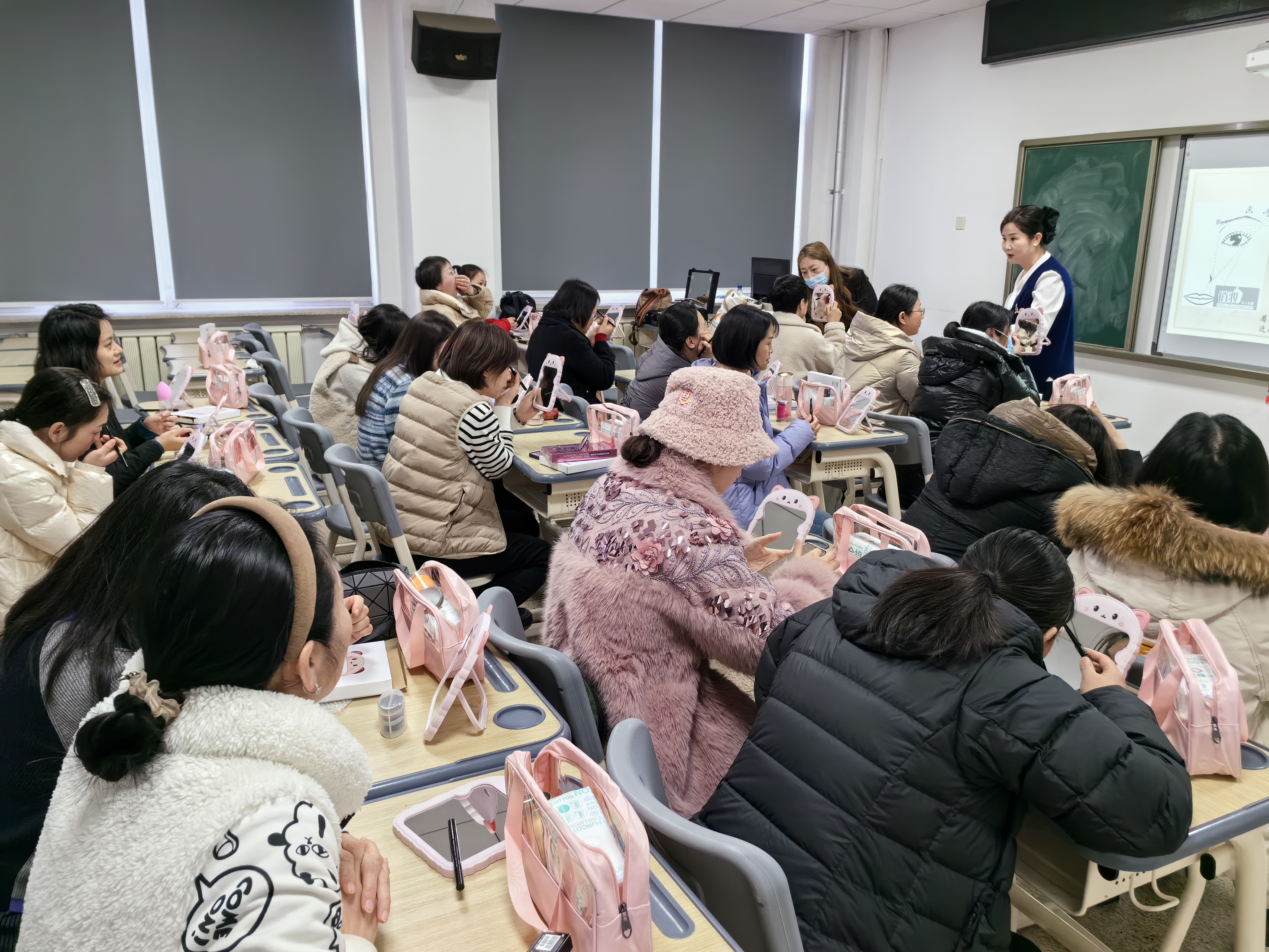 女教工精神文化生活,活跃学院文化氛围,学院于2024年3月6日组织举办“人面桃花相映红”化妆体验培训活动,帮助女教职工们学习化妆技巧,提升自我形象,展现女性风采。