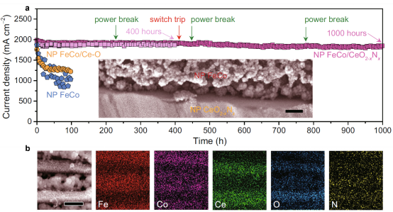 2.纳米多孔FeCo/CeO2xNx电极的稳定性