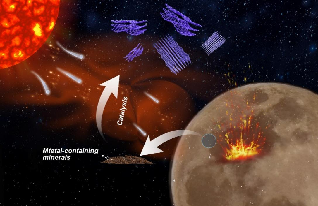 通过扫描电子显微成像、透射电子显微成像、冷冻条件下球差电镜的高角环形暗场像和高分辨像、能谱和电子能量损失谱、飞行二次质谱等多种表征技术的综合运用及测试结果的多方面严谨比对分析,探究并证实了月壤样品中检测到的石墨碳是少层石墨烯(2—7层),并提出少层石墨烯和石墨碳的形成可能源于太阳风和月球早期的火山喷发共同诱导的矿物催化进程。