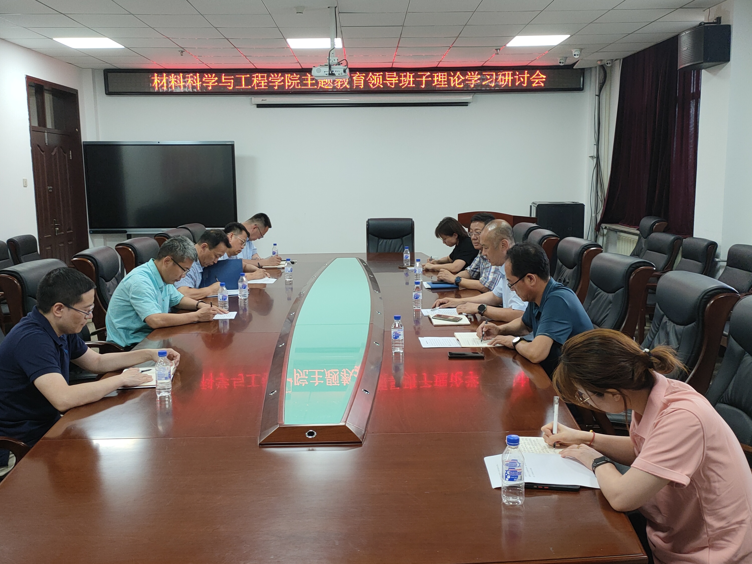 在材料馆410会议室召开学习贯彻习近平新时代中国特色社会主义思想主题教育理论学习研讨会,学院领导班子成员参会,主题教育第四巡回指导组组长、学校党建工作联络员刘炳恩出席会议。会议由学院党委书记刘远主持。