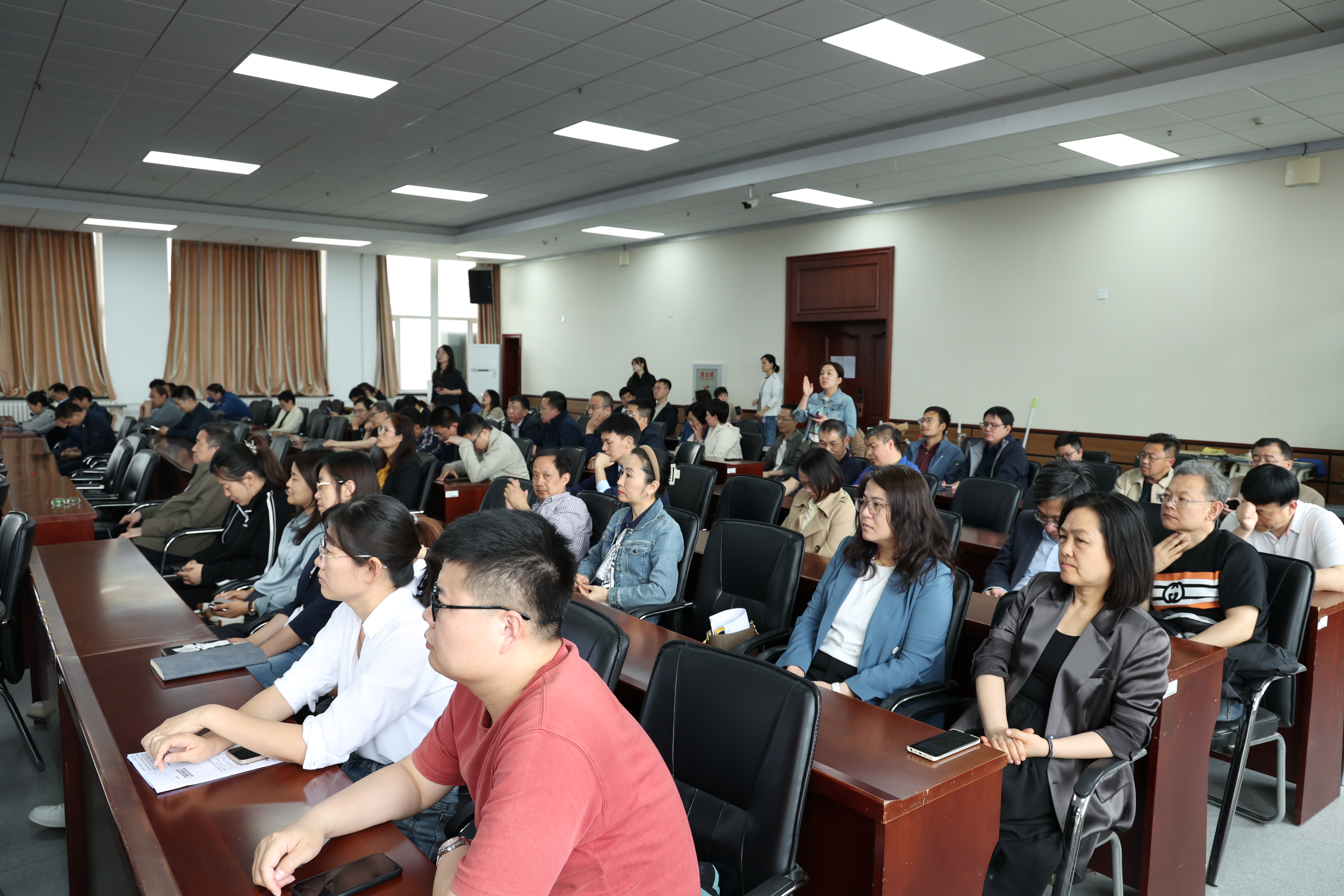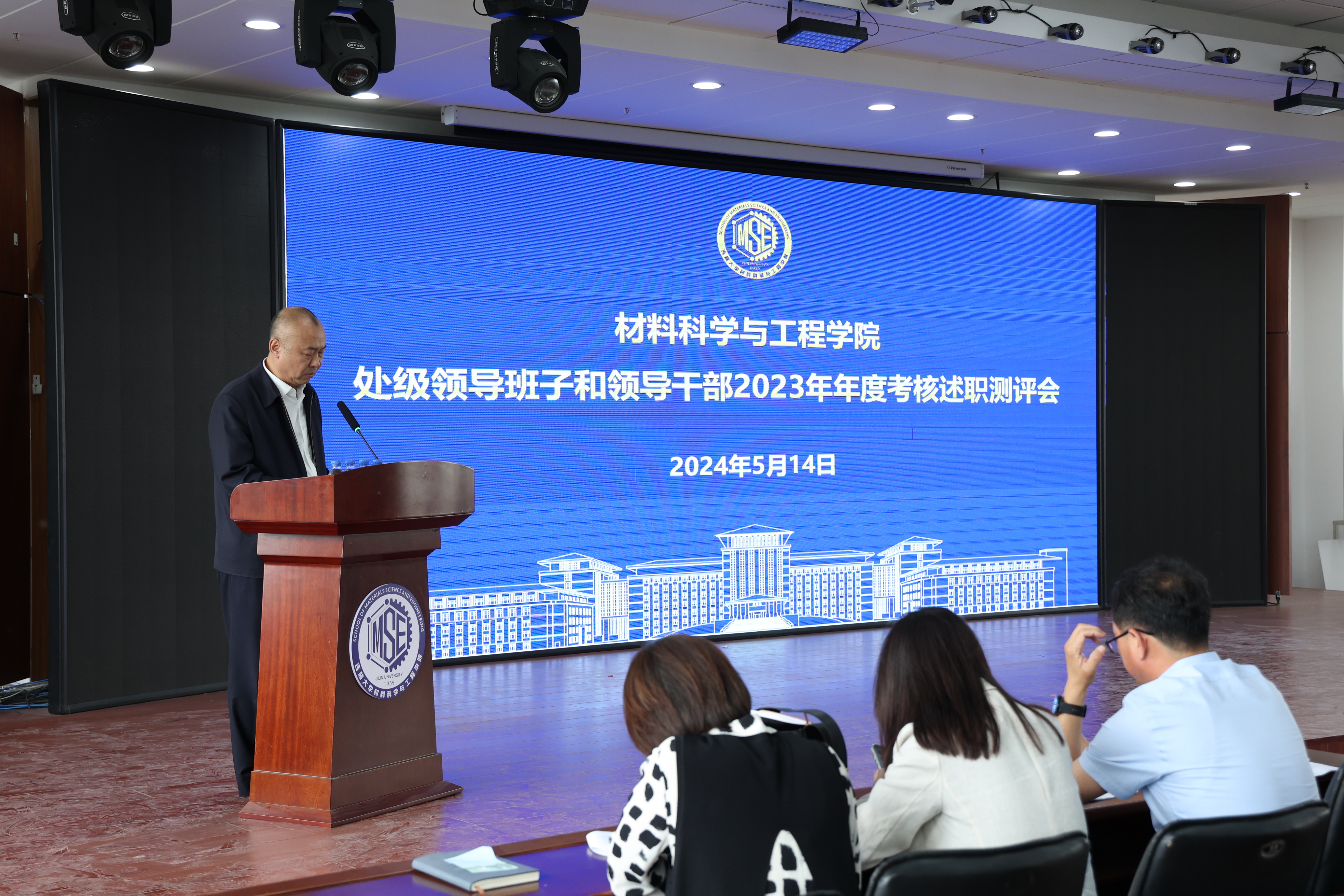 在材料馆八楼报告厅召开处级领导班子和领导干部2023年年度考核述职测评会,学院教职工代表参加会议。会议由党委书记刘远主持。