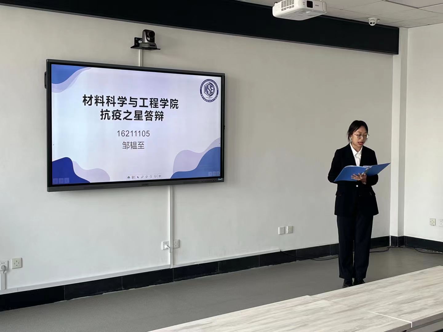 上午九点,本次答辩会准时开始。在主持人的简要介绍后,各位参与答辩的同学依次上场,从平日学习到科研探究,从社会实践到文体活动,材院学子全方位多层次地展现自己的靓丽青春。随后的“十佳班级”的答辩中,各班代表的精彩发言彰显了班团一体的红色风采、体现了班级凝聚力与活力。答辩期间各位评委老师表达了对同学们过往努力的认可与对明日之星的期望,并认真仔细地进行了打分。经过46名同学、17个班级的精彩答辩,本次答辩会圆满结束。