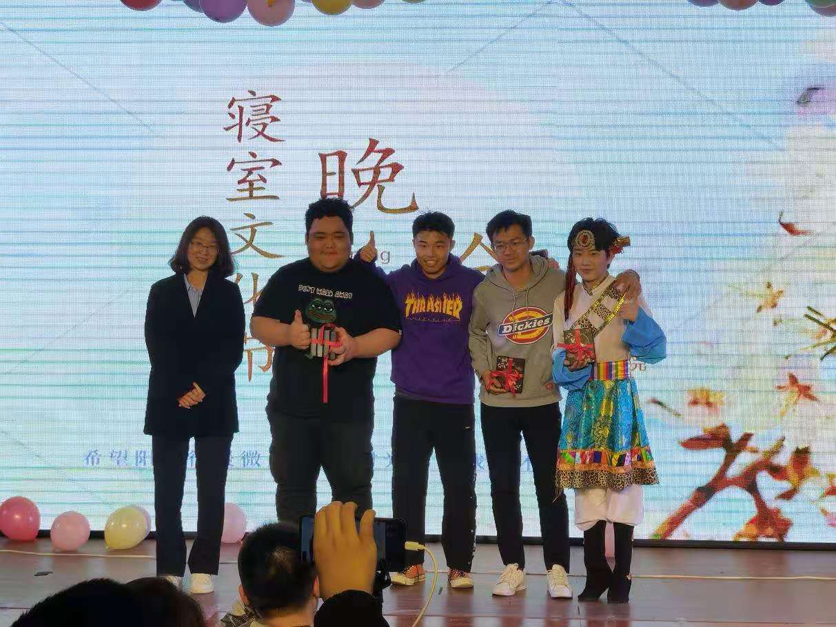 本次晚会首次采用现场观看和哔哩哔哩直播的模式,结合线上线下同步进行。晚会节目中炸裂全场的表演,幽默风趣的相声,刚柔并济的藏舞和优美动听的歌声给线下和线上的观众带来了一场精彩绝伦的视听盛宴。晚会穿插的游戏环节和现场抽奖环节不仅活跃了现场的氛围、增加了观众的参与感,而且让同学们在享受精彩节目的同时收获游戏的快乐。2020级同学寝室文化视频的展示环节将本次晚会推向高潮,寝室视频创意无限,节目表演结束后,经过现场观众推荐评选出了3个优秀节目,由辛颖老师为优秀节目进行颁奖,本次寝室文化节晚会在大家的欢声笑语中圆满落下了帷幕。