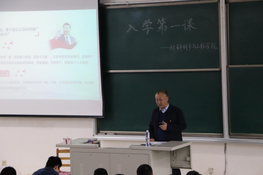 学科专业历史,细致的介绍了材料学院学科发展优势、专业情况及本科生教学工作,并向同学们展示了我院优秀的师资队伍、雄厚的科研实力和良好的就业前景,帮助新生清晰的了解所学专业的基本情况和未来行业发展态势,引导新生正确规划未来,明确学习目标。同时王文权教授并且针对不同年级不同专业的学习开展提出了建议,敦促同学们严于律己、勤奋学习,养成优良的生活学习习惯,尽快调整学习状态以适应到来的大学生活,引导学生在大学生活中全面发展,不断完善自己,成为报效国家的栋梁之才。