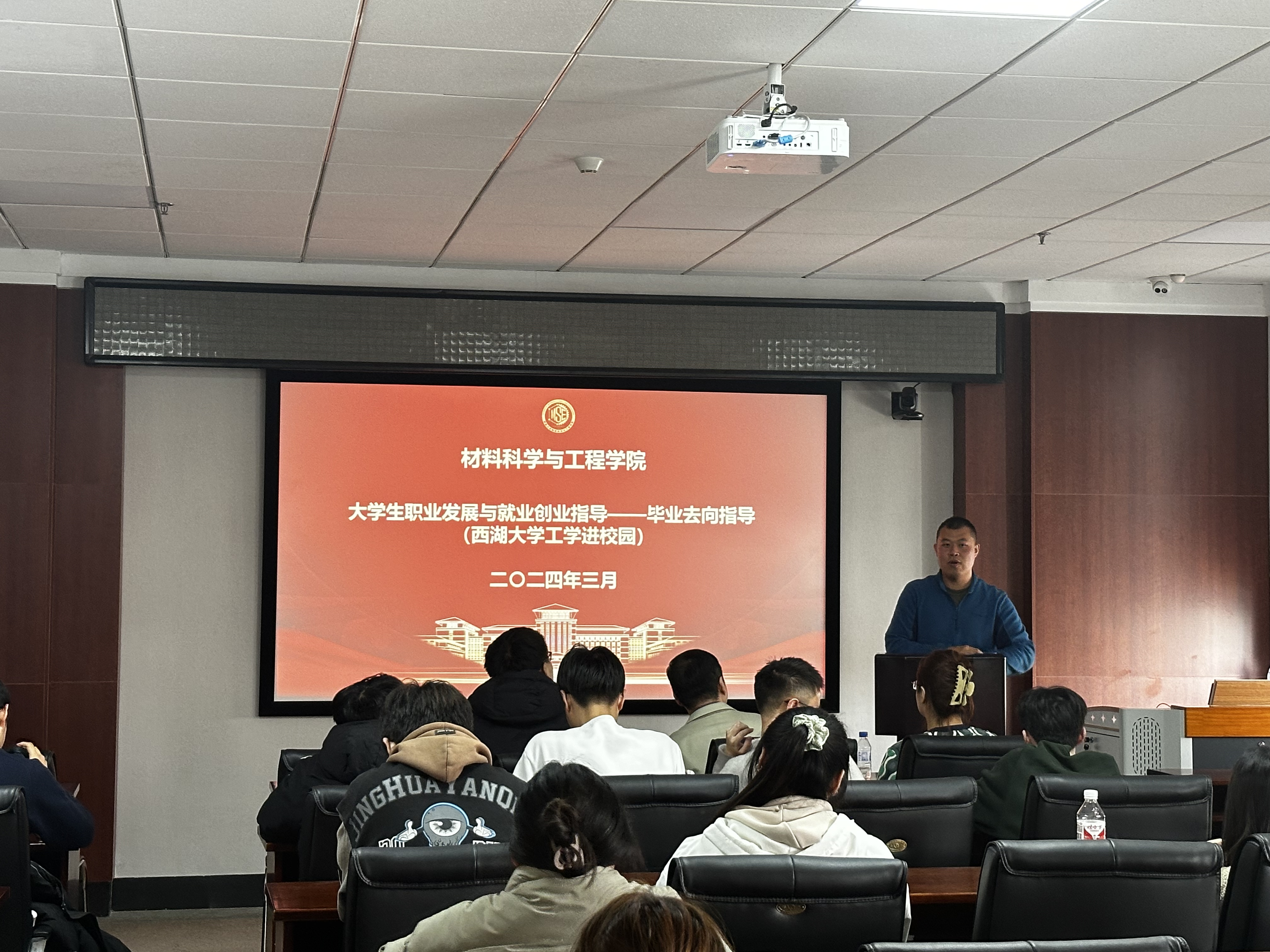大学生职业发展与就业创业指导(毕业去向指导)活动,于2024年3月27日在南岭校区逸夫机械材料馆209举行,本次活动邀请到西湖大学的教授进行介绍,学院2021级、2023级本科生辅导员严冬老师主持本次活动。