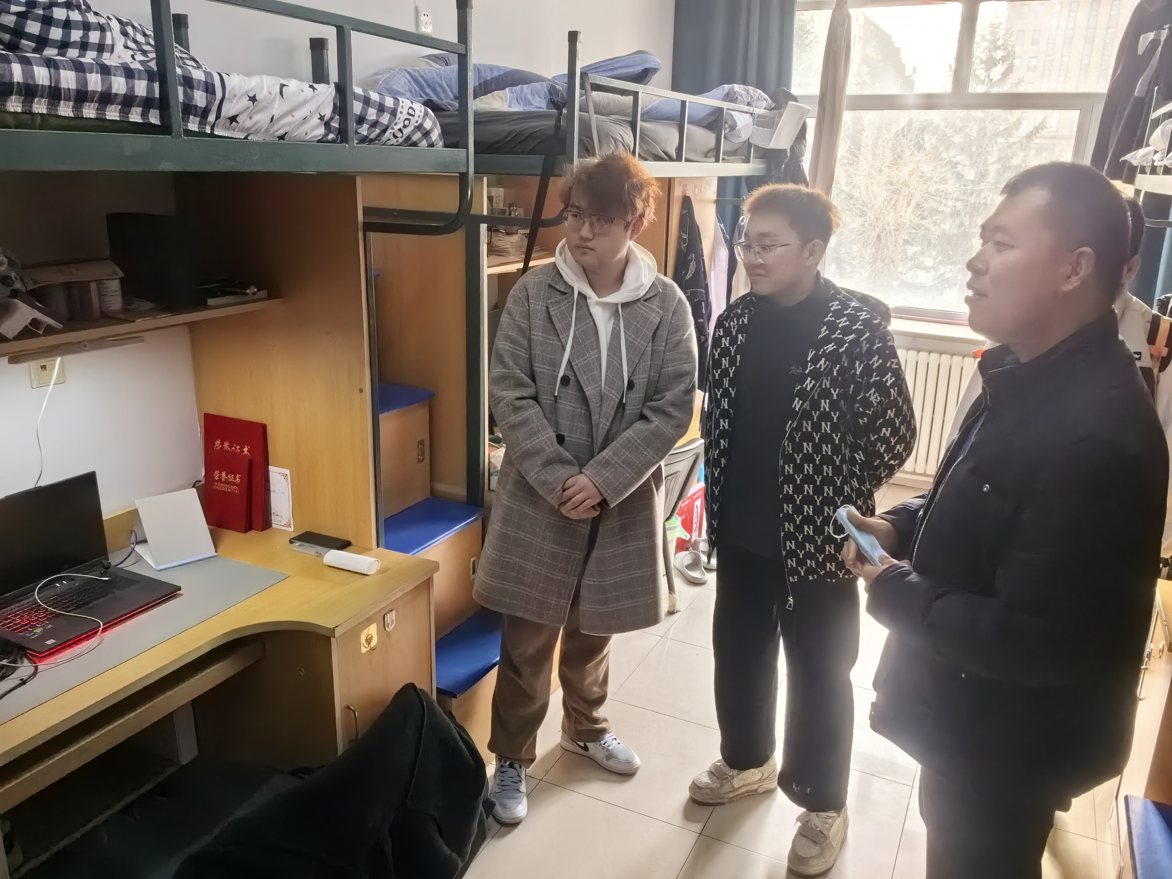 为加强寝室文明建设,扎实做好寝室安全工作,配合学校消防演练工作,黄色影片 2021级、2023级材料类专业本科生辅导员严冬老师于2024年3月29日中午走访十三公寓寝室。