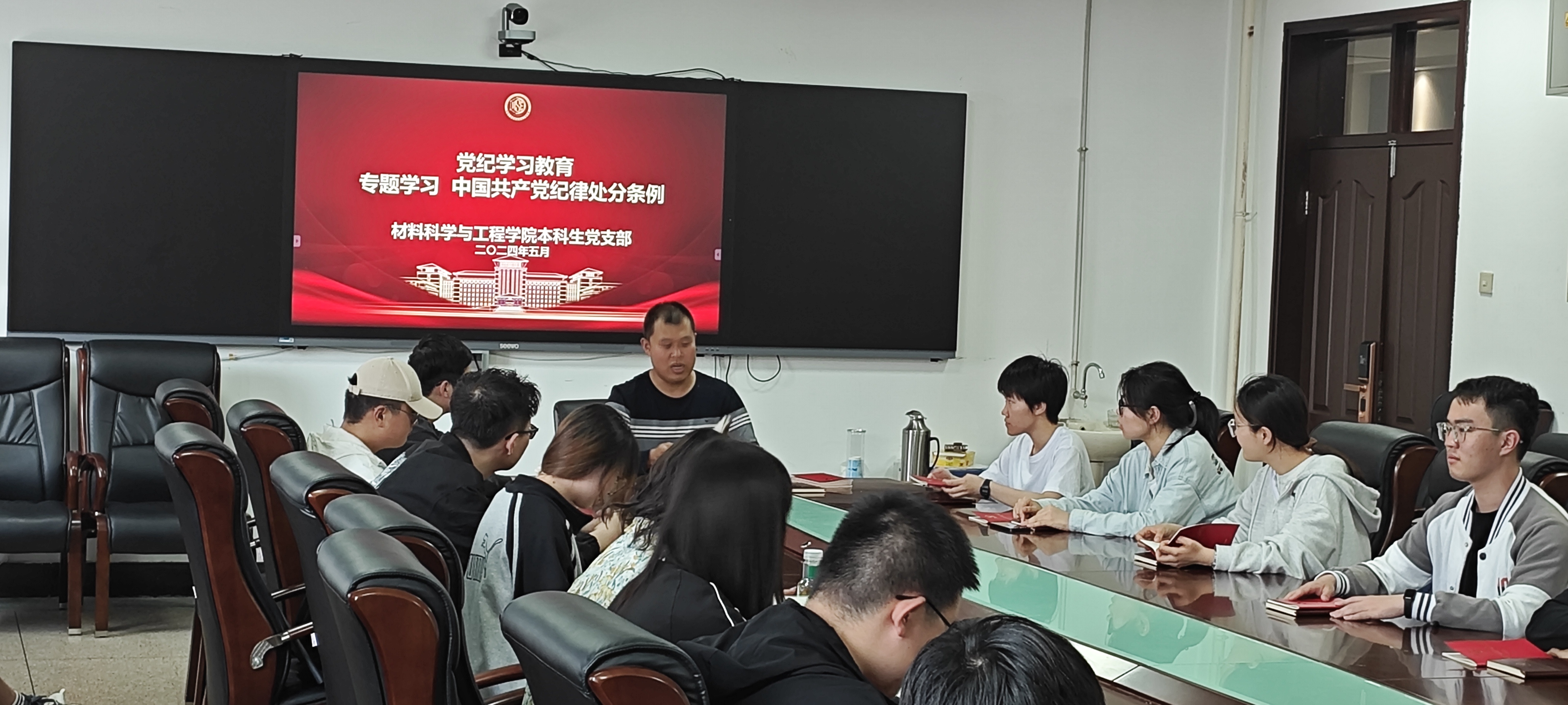 在会议中,严老师领学了党纪学习教育的相关文件。他提醒党员同学们要时刻保持政治敏感性,关注国家和社会的发展动态,努力提高自身的理论水平和实践能力。同时,他还强调了党员在班级管理、学术活动和社会服务中的重要作用,建议大家积极参与到各项活动中,发挥党员的先锋模范作用。最后,严冬老师对会议进行了总结,强调学生党员是学院发展的重要组成部分,希望大家能够进一步增强责任感和使命感,为材料学院的建设与发展贡献自己的力量。