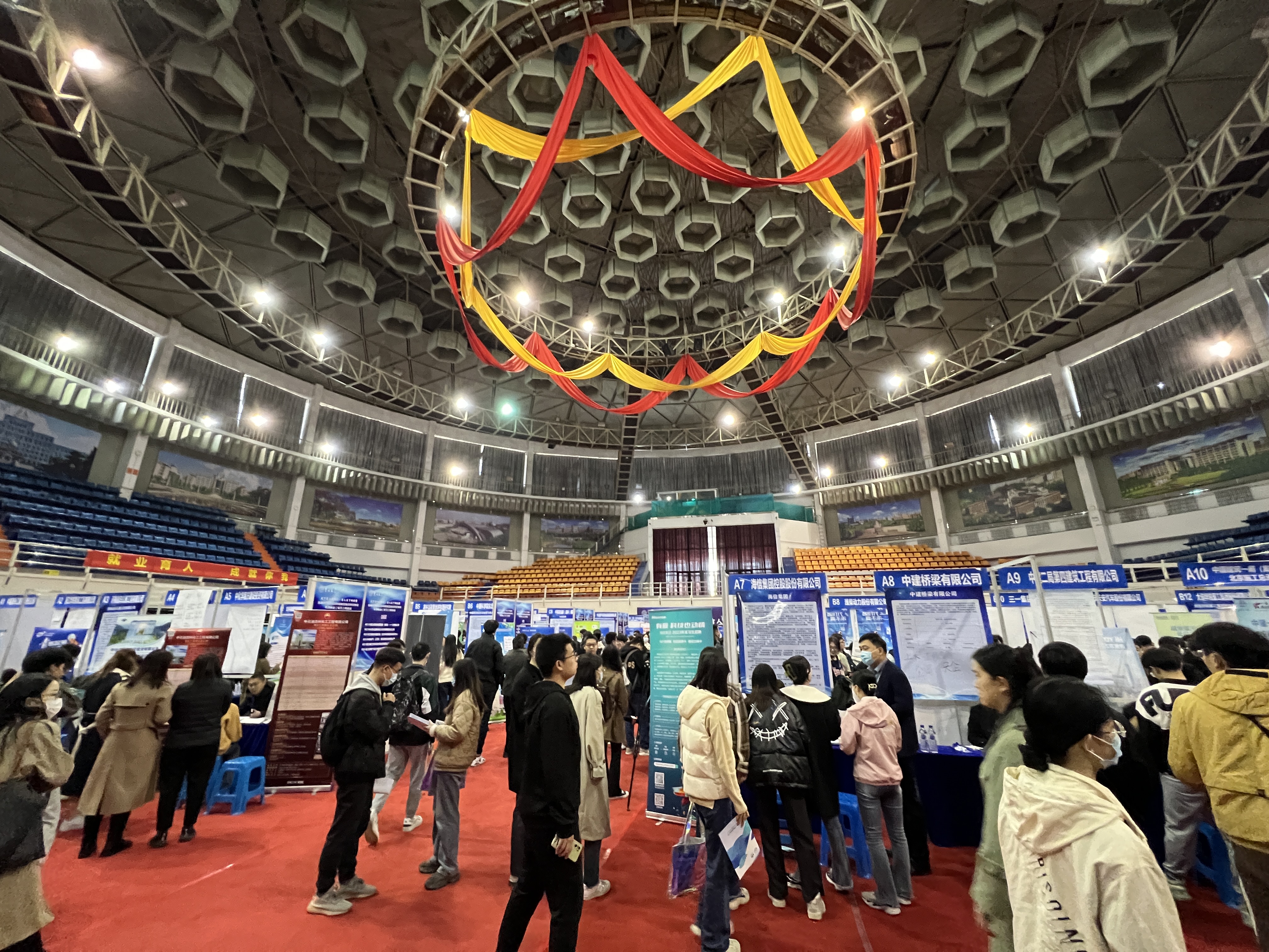 研究生辅导员杨美晨与本科辅导员刘艳丰组织百余名尚未落实就业去向的就业年级本科生与研究生协简历参加2023年校友企业及所在单位专场就业(实习)双选会。