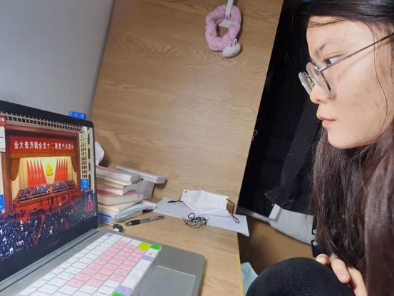 组织全体博士研究生党员在线观看,同学们迫不及待且自发地提前打开直播,以热烈而真挚的心迎接二十大的到来。