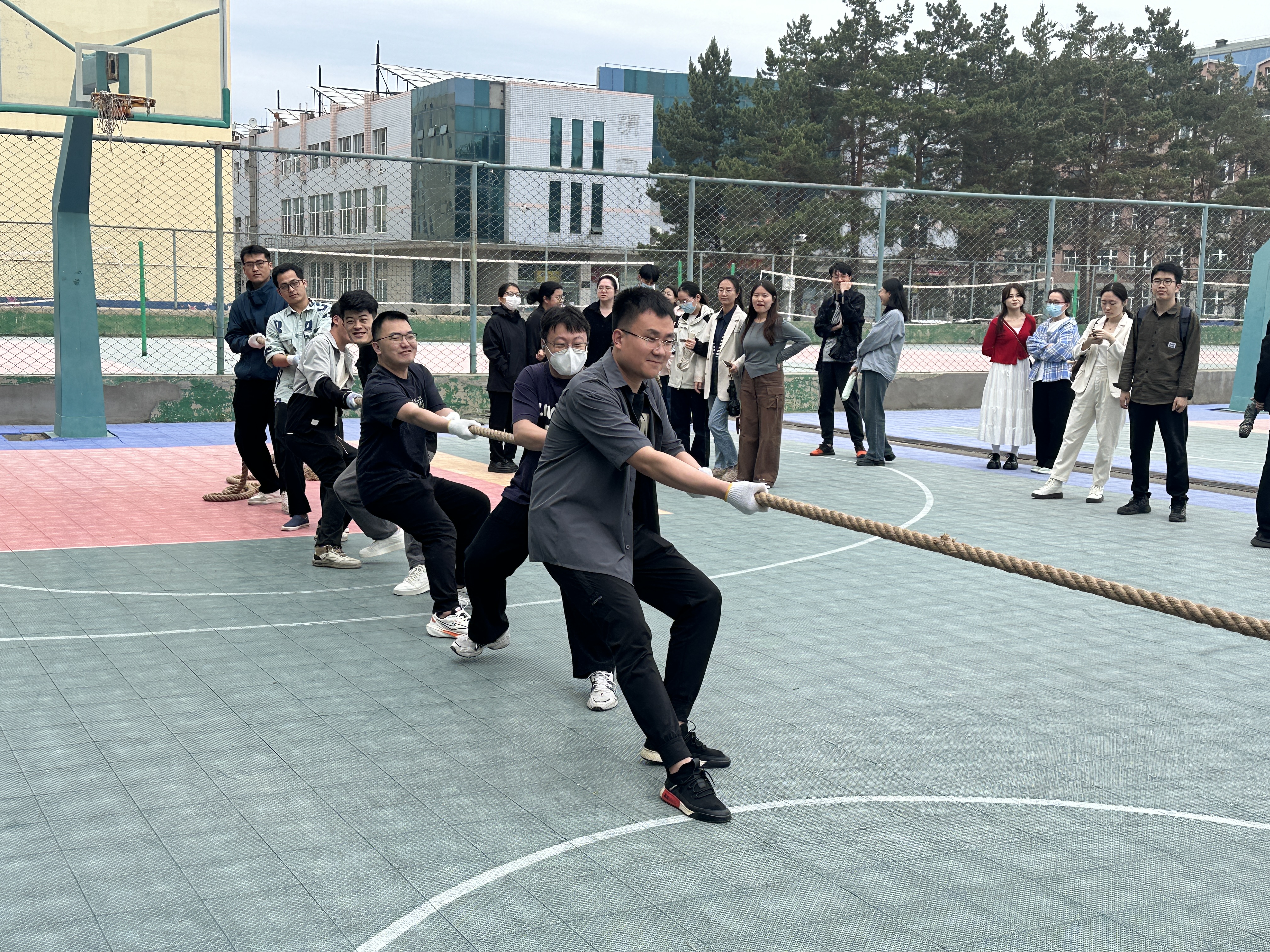 首先由材料科学工程学院心理朋辈辅导员张潇寒进行开场,宣读活动宗旨及比赛规则,由各参赛队伍进行对战队伍的抽签,抽签结束后,比赛正式拉开帷幕。各学院代表队精神饱满地走上赛场。他们紧握绳索,脚踏实地,身体后仰,做好了充分的准备。随着裁判的一声令下,队员们齐心协力,用力拉扯绳索,试图将对方拉过中线。比赛过程中,队员们充分展现了团队协作的精神。他们相互鼓励、默契配合,共同应对挑战。