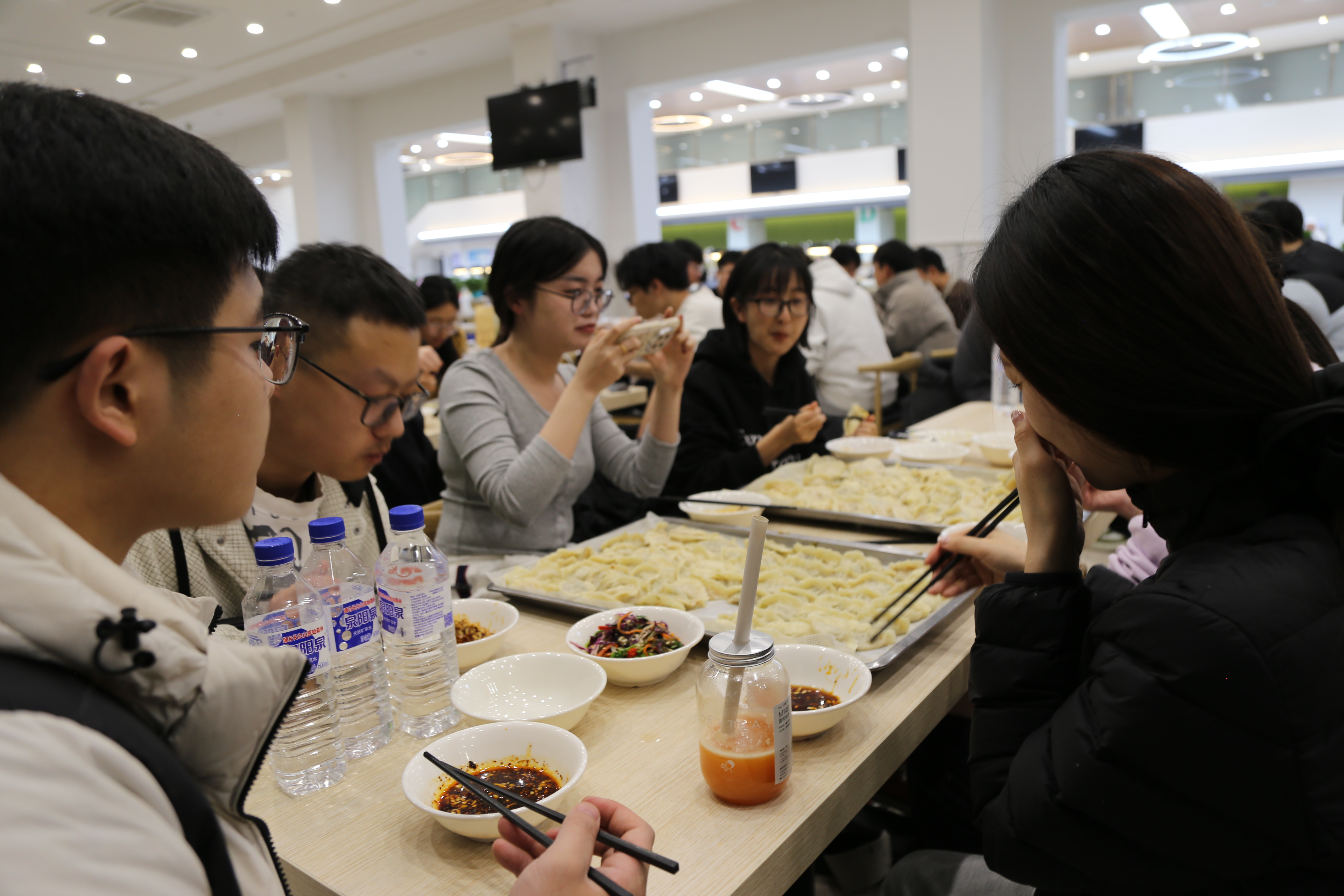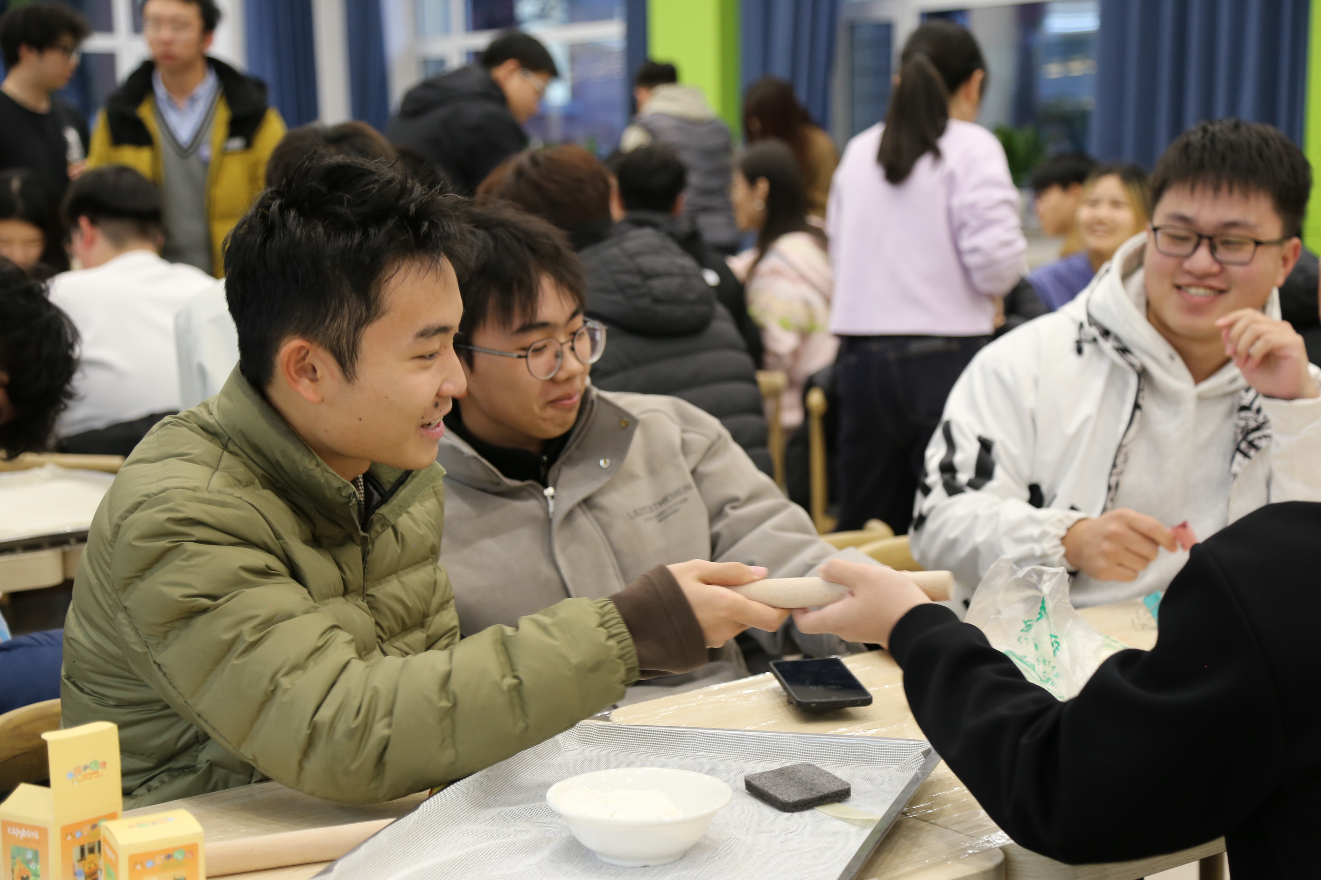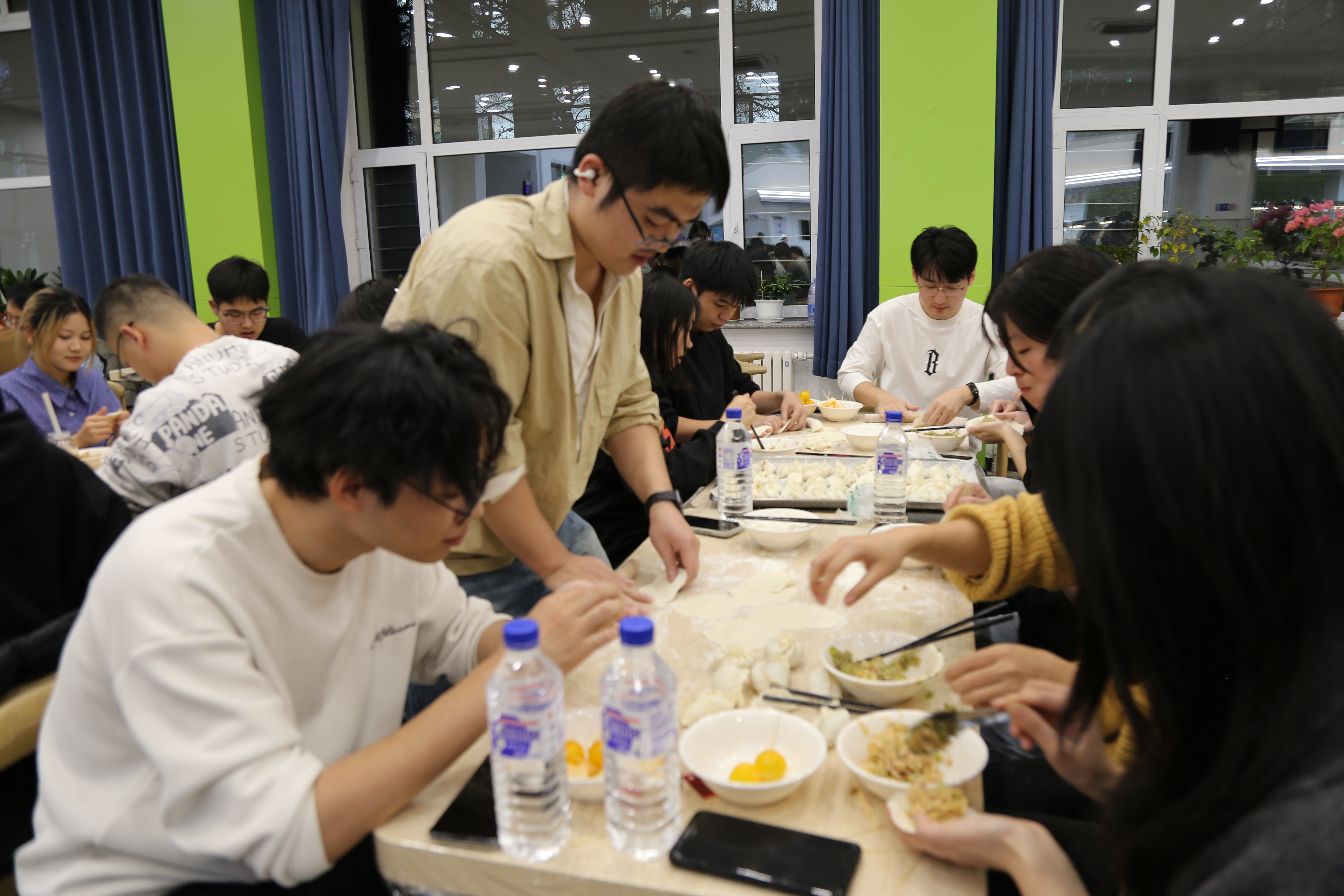 在包饺子环节中,同学们分工协作,揉面、擀皮、包馅、摆盘,形成了一条高效的“合作链”。具备经验的同学主动担任“技术指导”,耐心示范;初次尝试的同学积极学习,从生疏到熟练,在劳动中体验到成就感和团队归属感。材料学院徐虹老师也亲临现场,与同学们亲切交流,给予鼓励和指导,进一步增强了活动的教育意义和心理支持作用。