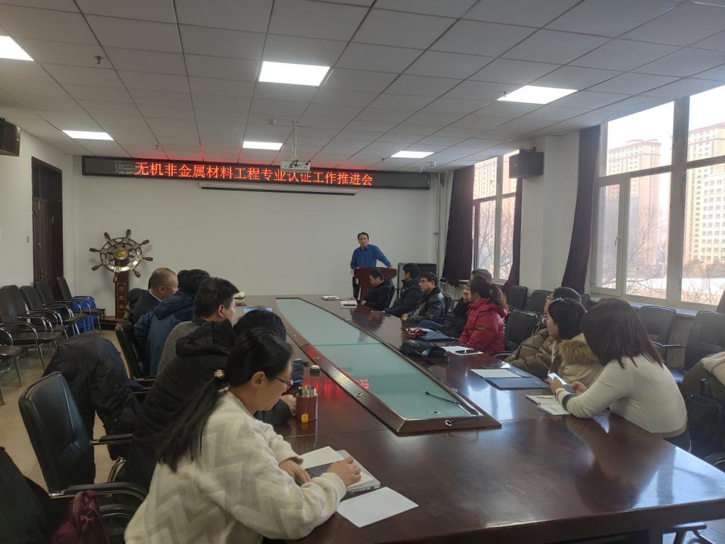2020年1月3日,无机非金属材料工程专业认证工作推进会在机械材料馆410会议室召开。本次会议由学院教学副院长王文权主持,党委书记刘远等学院领导班子成员、无机非金属材料工程专业全体教师及教务办、学工办负责老师参加了本次推进会。