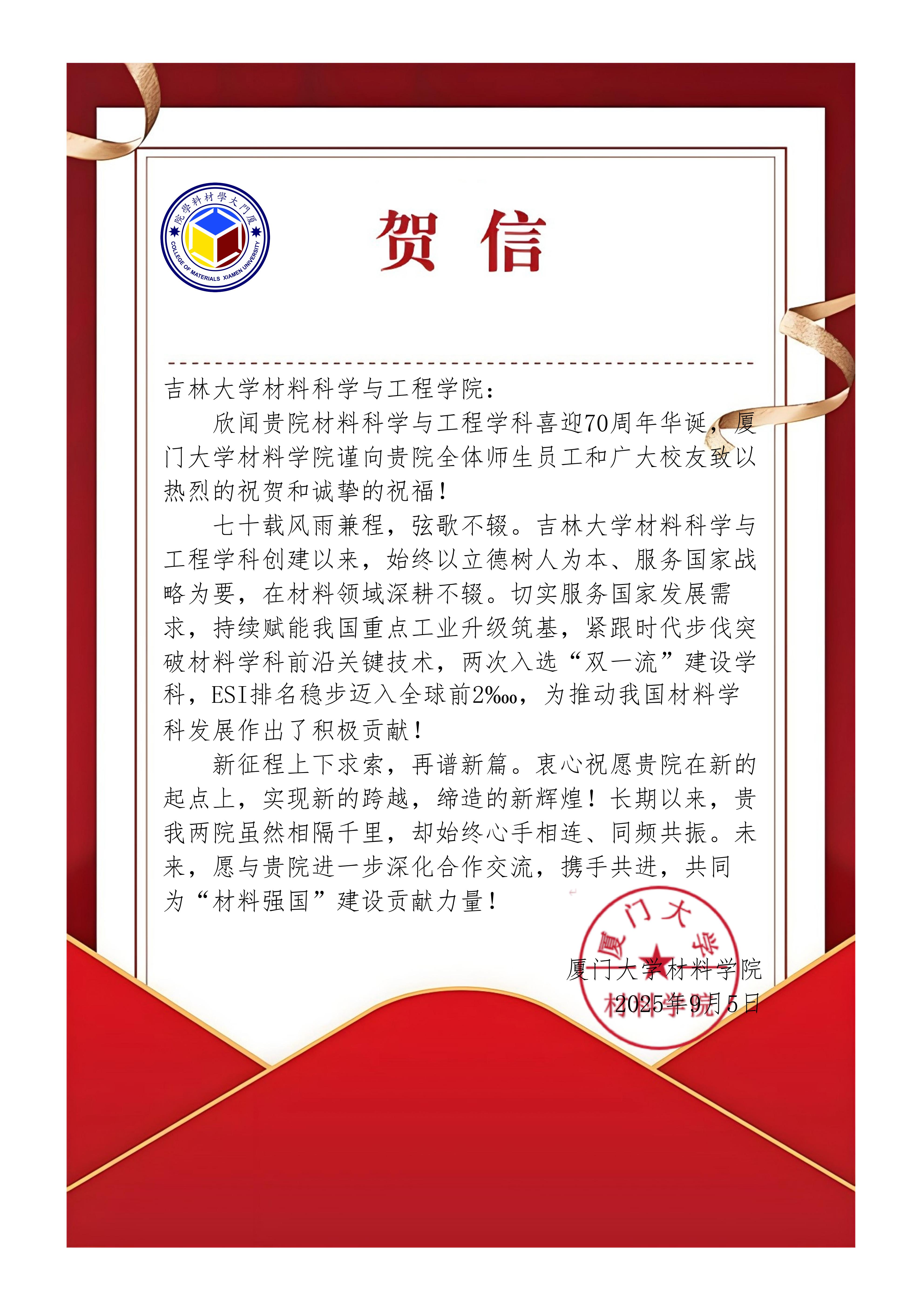 下一条:东北师范大学材料科学与工程学科、物理学科贺信