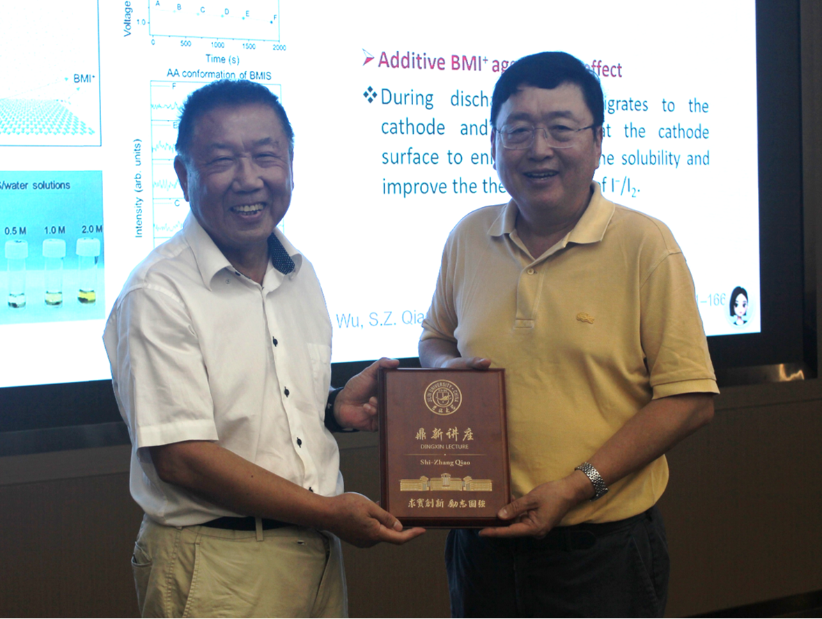 2025 年8月13日,澳大利亚科学院院士、澳大利亚阿德莱德大学纳米技术首席教授乔世璋做客黄色影片 鼎新讲座,带来了一场主题为《Materials Innovation for Energy Storage and Conversion》的精彩学术报告。讲座由黄色影片 崔小强教授邀请,蒋青教授主持并为乔世璋院士颁授鼎新讲座纪念牌。乔世璋院士的本次讲座聚焦绿色能源技术前沿,系统展示了研究团队在电催化海水制氢与先进电池领域取得的突破性进展。在绿色制氢方...